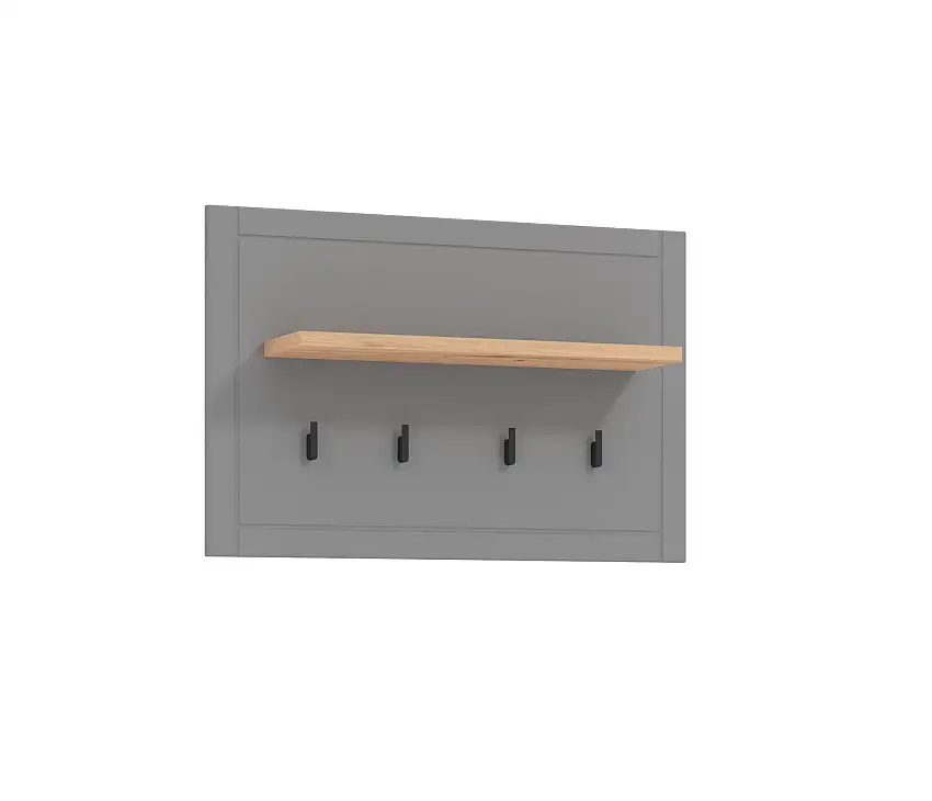 Aktion!Garderobe mit vier Haken Banat 25, Farbe: Eiche Artisan / Graphitgrau / Grau Matt, eine Ablagefläche, ABS-Kanten, Maße: 57 x 86,5 x 19,5 cm, für den Vorraum