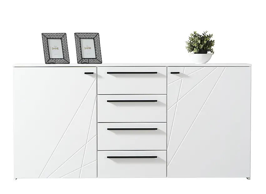 Aktion!Sideboard / Kommode mit vier Fächer Bogati 05, Farbe: Weiß / Weiß Hochglanz, zwei Türen, vier Fächer, Maße: 80,5 x 163 x 40 cm, ABS-Kanten