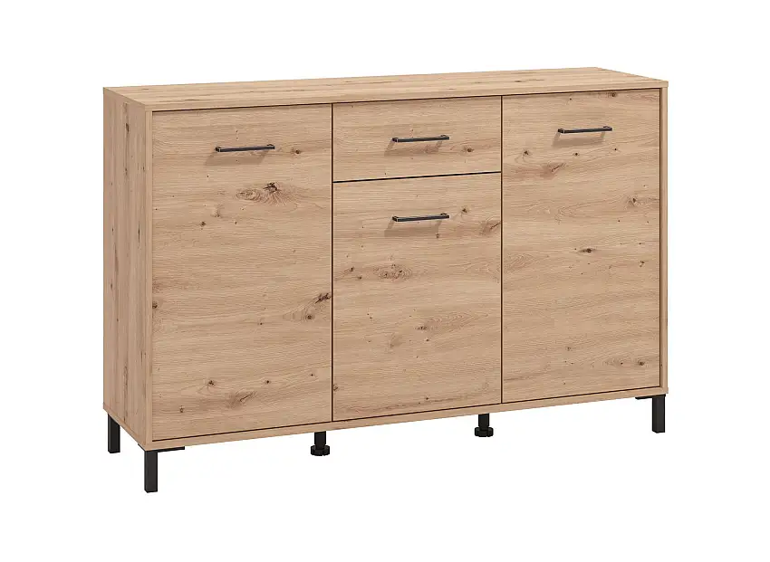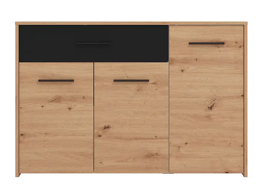Aktion!Sideboard / Kommode mit vier Fächer Brus 17, Farbe: Eiche Artisan / Schwarz, eine Schublade, drei Türen, Maße: 80,5 x 119 x 33 cm, ABS-Kantenschutz