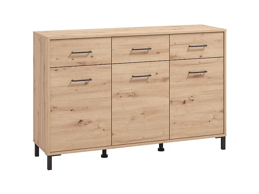 Aktion!Sideboard / Kommode mit drei Schubladen Sabas 10, Farbe: Eiche Artisan, drei Türen, ABS-Kantenschutz, sechs Fächer, Maße: 90 x 138 x 40 cm