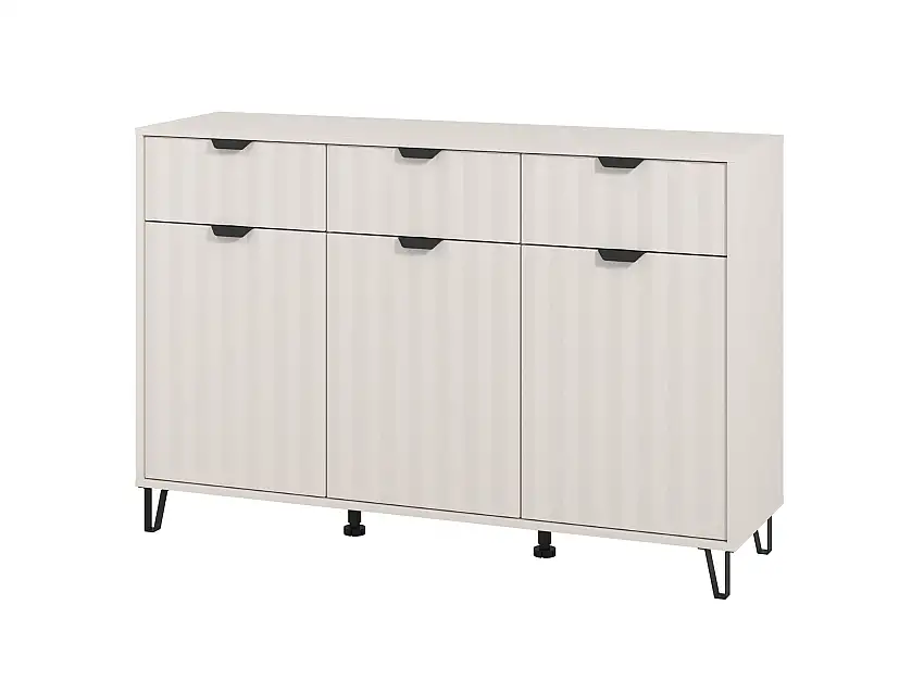 Aktion!Sideboard / Kommode mit sechs Fächer Vladim 02, Farbe: Kaschmir / Kaschmir Matt, drei Schubladen, ABS-Kanten, drei Türen, Maße: 90,5 x 138 x 40 cm