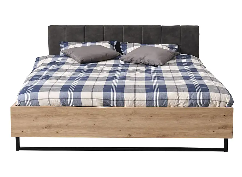 Aktion!Doppelbett mit gepolsterten Kopfteil Crina 08, Farbe: Eiche Artisan / Grau, ABS-Kanten, Beine: Metall, Liegefläche: 180 x 200 cm