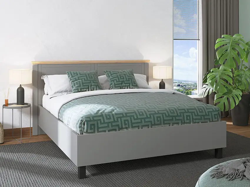 Aktion!Stabiles Doppelbett Trovica 03, Farbe: Eiche Grau / Weiß, gepolstertes Kopfteil, ABS-Kantenschutz, gut kombinierbar, Liegefläche: 160 x 200 cm