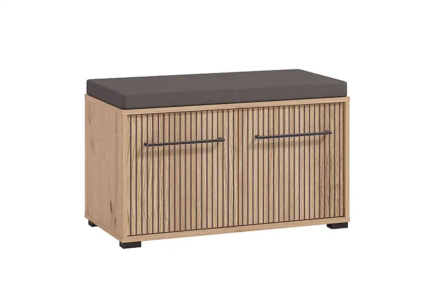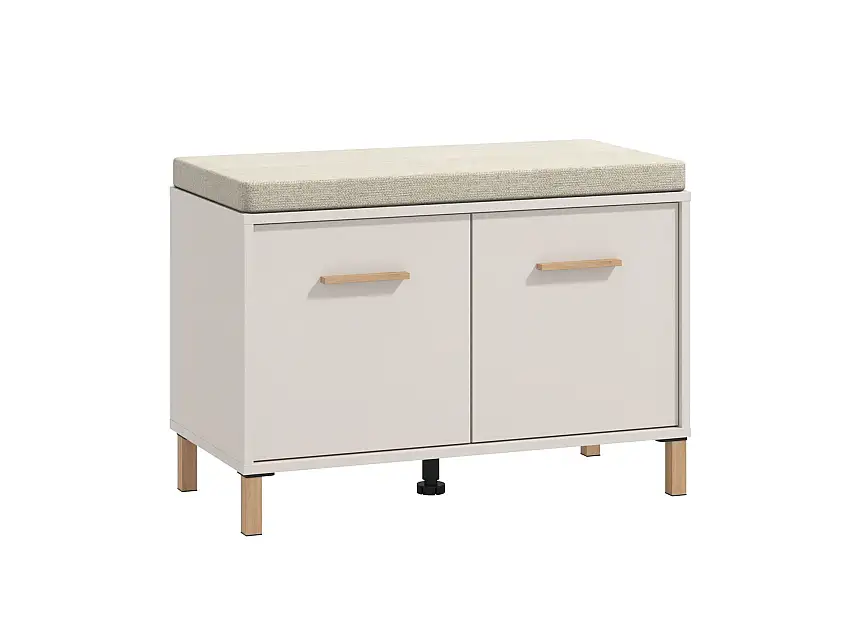 Aktion!Sitzbank mit Stauraum Paduna 02, gepolsterte Sitzfläche, zwei Türen, ABS-Kanten, zwei Fächer, Maße: 49 x 80 x 40 cm, einfaches und modernes Design