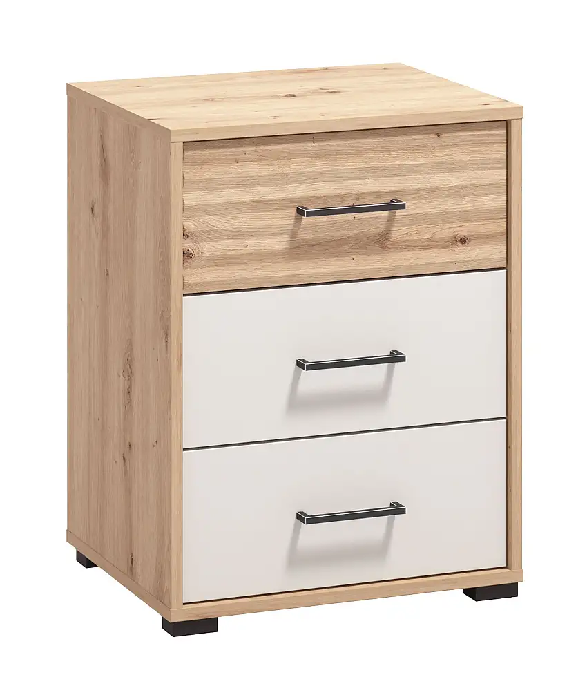 Aktion!Stylische Nachtkommode mit drei Schubladen Irigo 09, Farbe: Eiche Artisan / Kaschmir, ABS-Kantenschutz, Maße: 63 x 48 x 63 cm, für Schlafzimmer