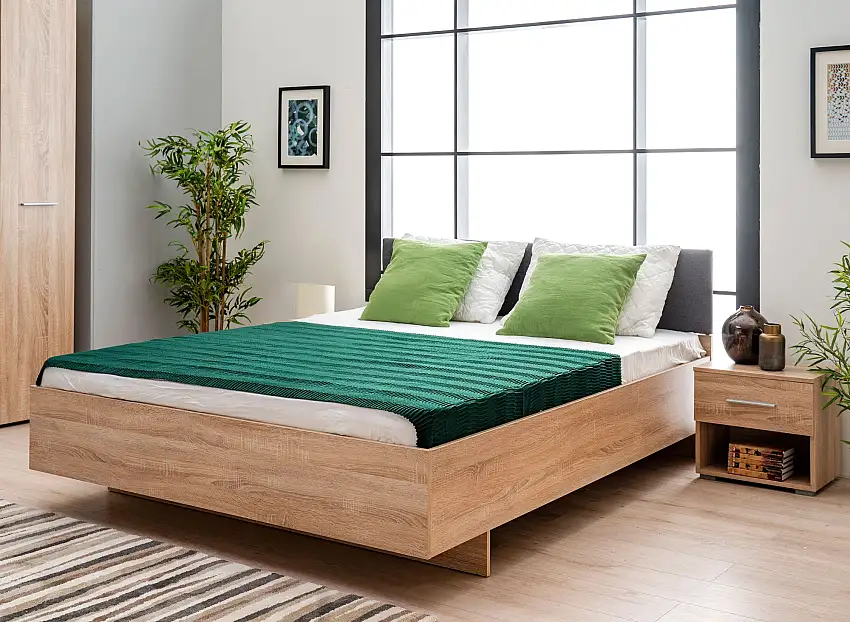 Aktion!Doppelbett mit gepolsterten Kopfteil Vibas 06, Farbe: Eiche Sonoma / Grau, einfaches und modernes Design, Liegefläche: 160 x 200 cm