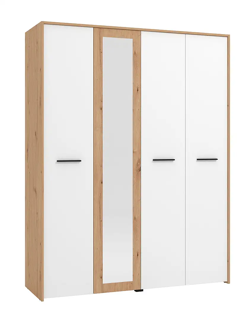 Aktion!Drehtürenschrank / Kleiderschrank Brus 01, Farbe: Eiche Artisan / Weiß, Spiegeltür, Maße: 203,5 x 157,5 x 53 cm, eine Kleiderstange, sechs Fächer