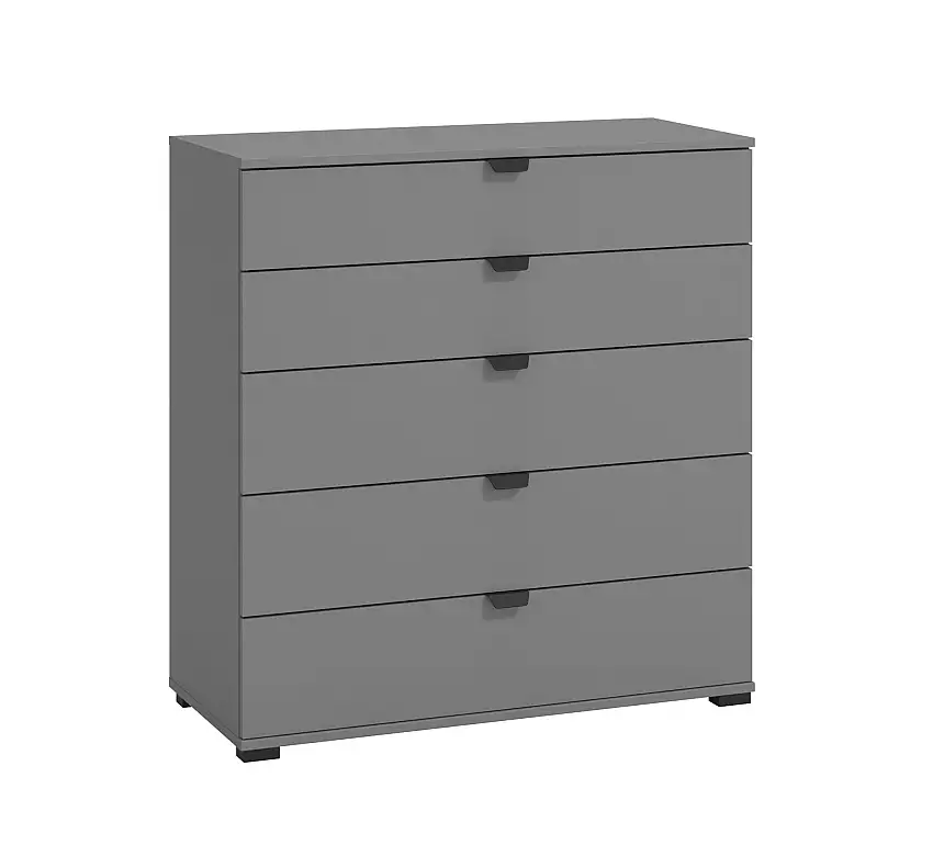 Aktion!Dunkle Kommode mit fünf Schubladen Pecini 06, Farbe: Graphitgrau, ABS-Kanten, Griffe & Beine: Schwarz, Maße: 95 x 90 x 40 cm, genügend Stauraum