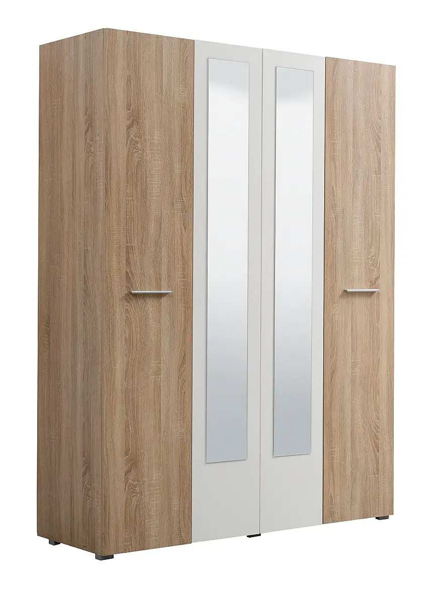 Aktion!Drehtürenschrank mit zwei Spiegeltüren Vibas 01, Farbe: Eiche Sonoma / Weiß, eine Kleiderstange, Maße: 200 x 148 x 51,5 cm, sechs Fächer, ABS-Kanten