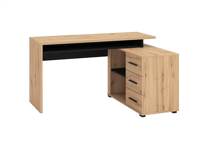 Aktion!Eckschreibtisch Batani 02, Farbe: Eiche Artisan / Schwarz, drei Schubladen, verstellbaren Element, ABS-Kanten, Maße: 75 x 137,5 x 101,5 cm, zwei Fächer
