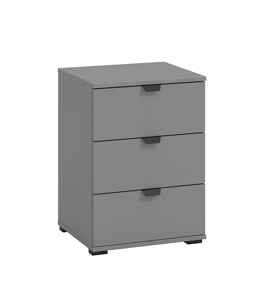 Aktion!Dunkle Nachtkommode Pecini 11, Farbe: Graphitgrau, drei Schubladen, ABS-Kantenschutz, Griffe & Beine: Schwarz, Maße: 63 x 45 x 40 cm, modernes Design