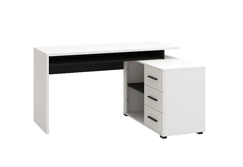 Aktion!Eckschreibtisch mit zwei Fächer Batani 03, Farbe: Weiß / Schwarz, ABS-Kanten, drei Schubladen, verstellbaren Element, Maße: 75 x 137,5 x 101,5 cm
