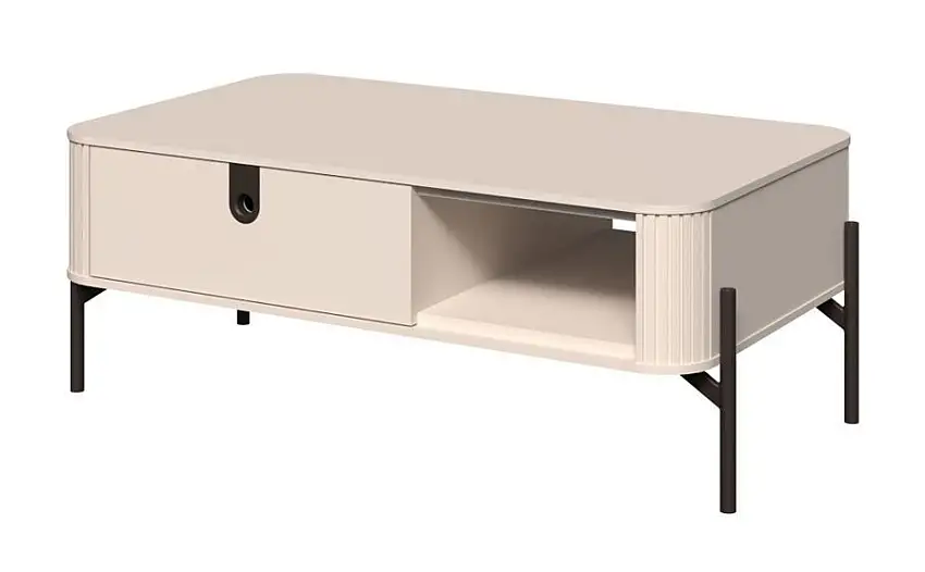 Couchtisch mit Schublade | 43 x 110 x 65 cm | Kaschmir matt | Soft Close System | Metallbeine | dekorative Relief-Streifen | 1 Fach
