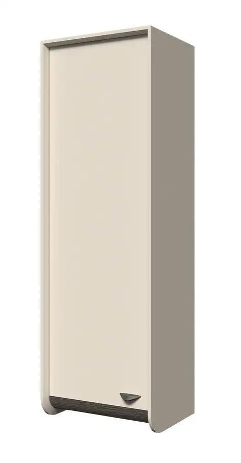 Hängeschrank in Creme | Soft Close System | abgerundeter Boden in Eiche-Grau-Dekor | 128 x 42 x 33 cm | Metallgriffe | 1 Tür | 3 Fächer | 2 Holzeinlegeböden