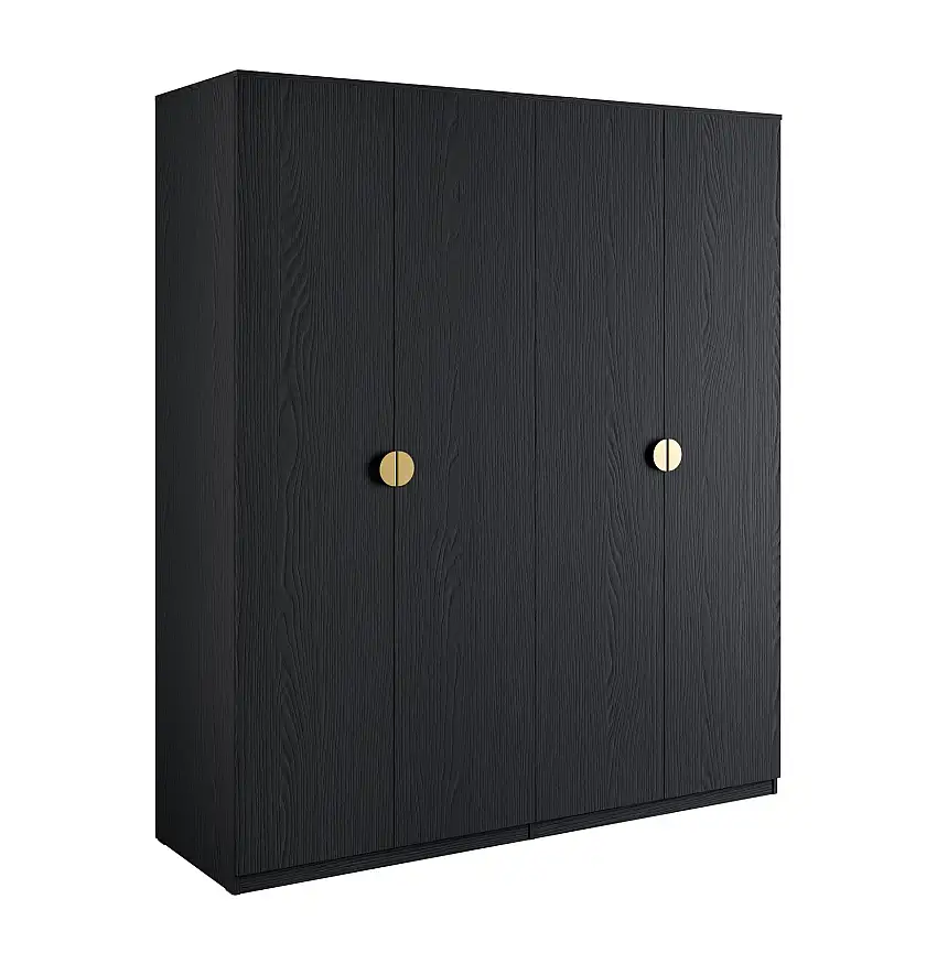 Aktion!Drehtürenschrank / Kleiderschrank Amfipoli 08, vier Türen, Farbe: Schwarz mit Holzstruktur, zwei Kleiderstangen, Maße: 209 x 179,5 x 58,5 cm, Soft-Close-Funktion