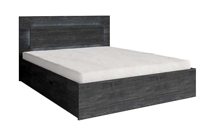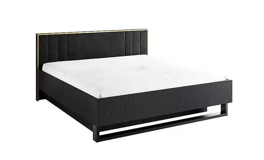 Aktion!Doppelbett mit gepolsterten Kopfteil Amfipoli 11, Farbe: Schwarz mit Holzstruktur, Beine: Metall, Liegefläche: 160 x 200 cm
