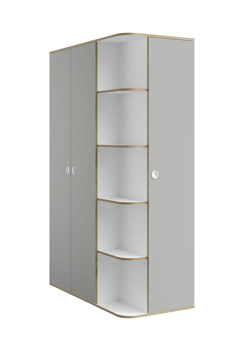 Aktion!Drehtürenschrank / Kleiderschrank mit drei Türen Ithaka 03, Farbe: Weiß / Grau, eine Kleiderstange, 11 Fächer, Maße: 196,5 x 120 x 60 cm