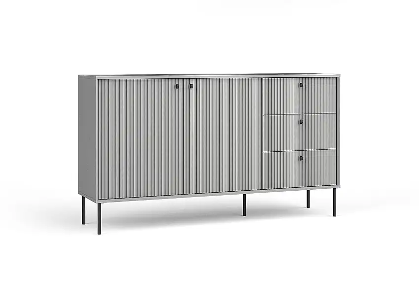 Aktion!Kommode mit drei Schubladen Alonnisos 02, zwei Türen, Farbe: Grau, zwei Funktion, modernes Design, Maße: 89 x 156 x 41 cm, Soft-Close-Funktion