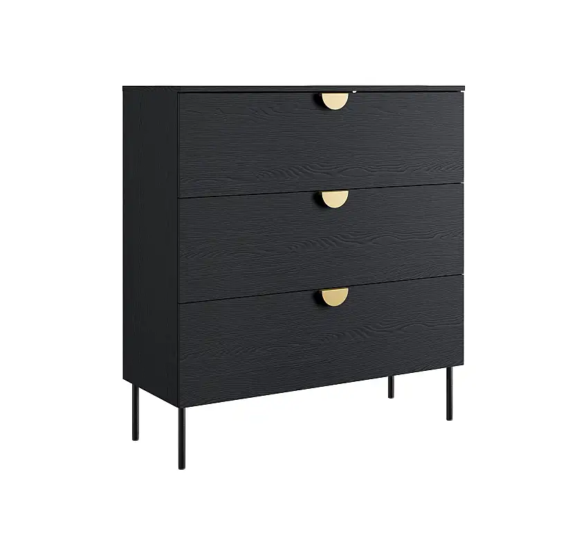 Aktion!Kommode Amfipoli 10, Soft-Close-Funktion, Farbe: Schwarz mit Holzstruktur, drei Schubladen, Griffe & Beine: Metall, Maße: 100,5 x 100 x 40 cm