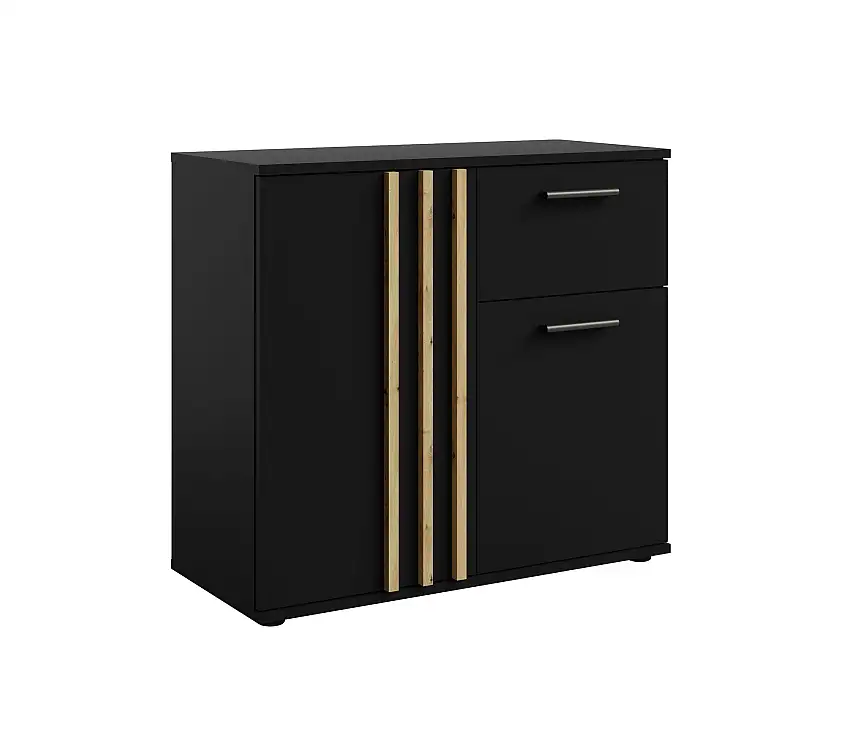 Aktion!Kommode mit einer Schublade Elefsina 04, zwei Türen, drei Fächer, schmale Kommode, Farbe: Schwarz / Eiche Artisan, Maße: 73 x 80 x 35 cm, modernes Design