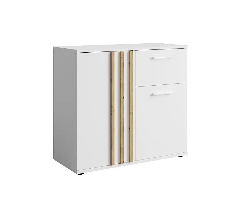 Aktion!Kommode mit einer Schublade Elefsina 04, zwei Türen, drei Fächer, schmale Kommode, Farbe: Weiß / Eiche Artisan, Maße: 73 x 80 x 35 cm, modernes Design