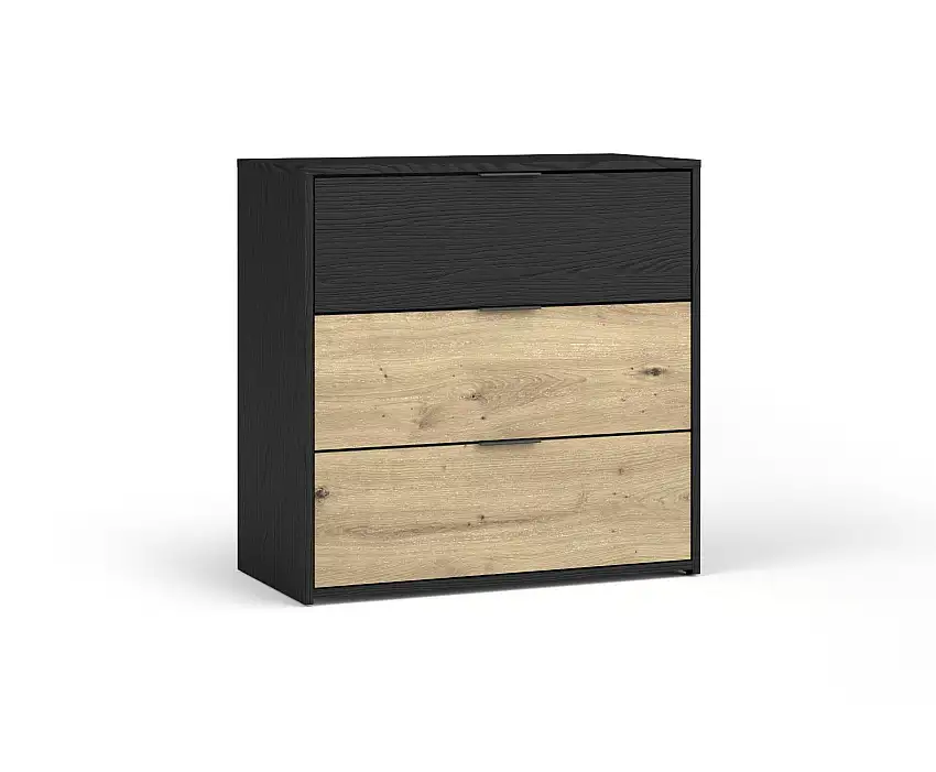 Aktion!Kommode mit drei Schubladen Galatsi 03, Farbe: Schwarz mit Holzstruktur / Eiche Artisan, ABS-Kantenschutz, für Schlafzimmer, Maße: 80 x 80 x 40 cm