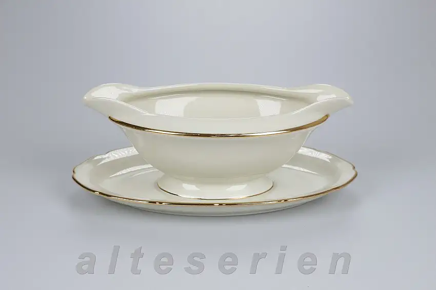 Aktion!Sauciere mit Teller einteilig – Tielsch Altwasser Goldrand 1 – 5 mm