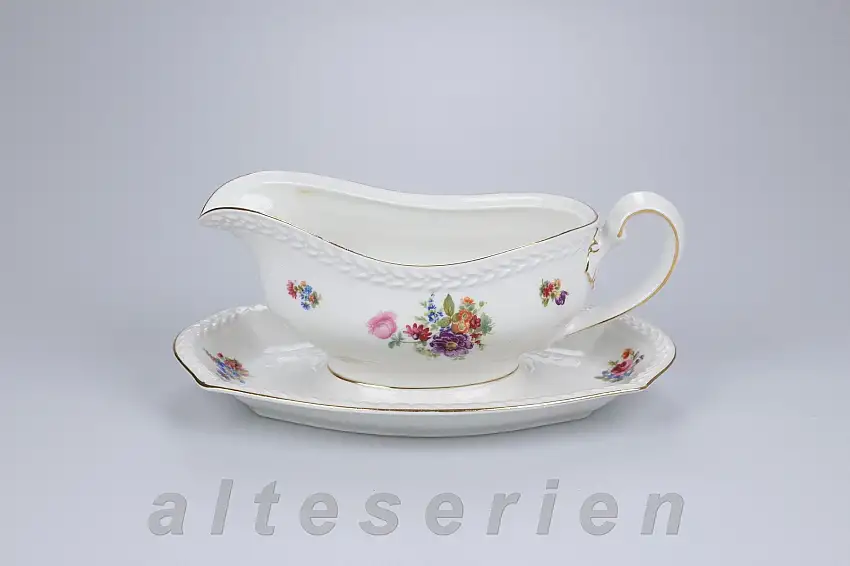 Aktion!Sauciere mit Teller einteilig – Tielsch Altwasser Reliefform Deutsche Blume 3341