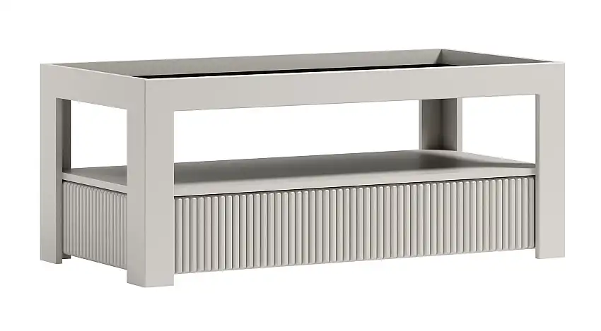 Couchtisch in Creme Manono 09 | stabiler Beistelltisch | 42 x 110 x 65 cm | Metallbeine in Anthrazit | Sofatisch | abgerundete Tischplatte
