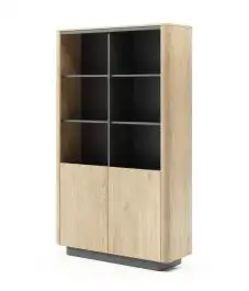 Regal mit zwei Türen Sakiet 01 | Farbe: Eiche Cremona / Schwarz | 10 Fächer | abgerundet an den Seiten | Push-to-open Funktion | ABS | Maße: 190 x 113 x 38 cm