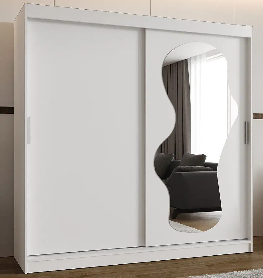 Schiebetürenschrank Lagginhorn 18, Farbe: Weiß, 2 Meter breit, Aluminiumschienen, eine Spiegeltür, Kleiderschrank, 10 Fächer, zwei Kleiderstangen